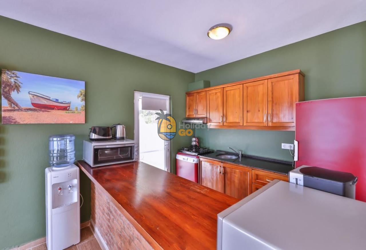 Villamız modern ve şık dizayn edilmiş bir salona sahip olup Salonumuzda ; Oturma grubu, dijital uydu alıcı, televizyon, klima, lavabo, ütü, ütü masası ve kablosuz internet mevcuttur ayrıca salondan terasa çıkış bulunmaktadır.Kitchen