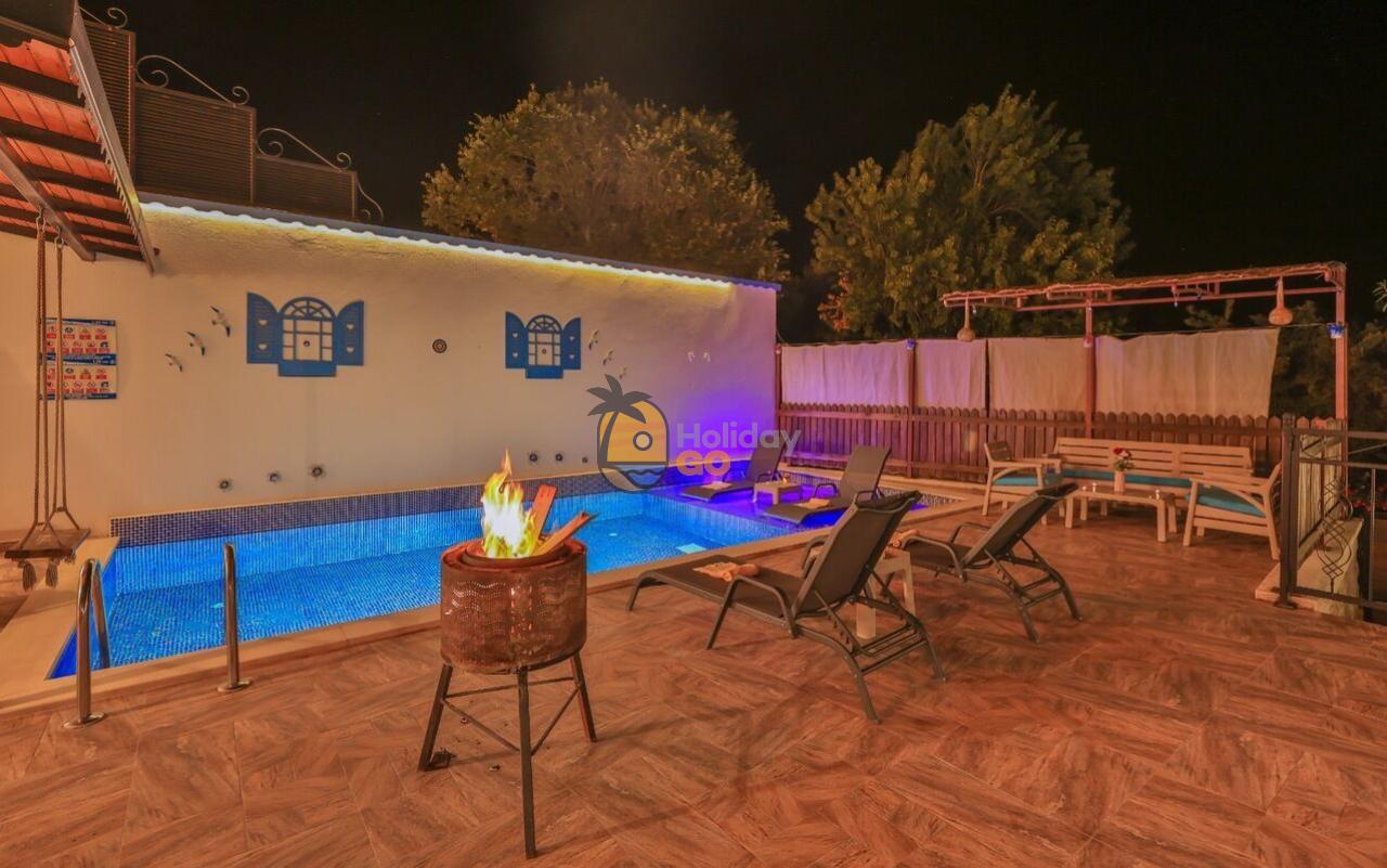 It is a very special and luxurious villa located in nature. This villa, which has 2 bedrooms and 2 bathrooms, is located in Orta Kuyu Mevkii of Kaş Çukurbağ Neighborhood. Our villa, which is 10 km from the center and the sea, has a private swimming pool. The pool terrace of our villa, which is very suitable for conservative families with children, is completely sheltered. While you, our valued guests, enjoy your holiday, you can have a pleasant time with your children in our villa. Villa Sena and Villa Yiğit were villas located side by side. For large groups, it is possible to rent two villas at the same time. A wonderful holiday will be waiting for you.