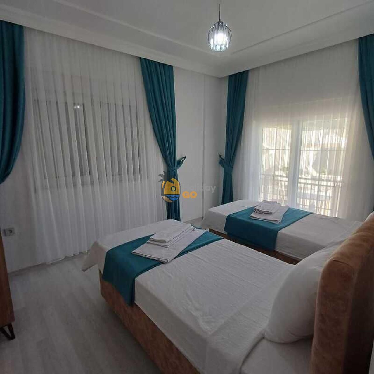 1. Yatak Odası: 1 adet çift kişilik yatak, elbise dolabı, makyaj masası, komidin, ve banyo-wc bulunmaktadır.2. Yatak Odası: 2 adet tek kişilik yatak, elbise dolabı,makyaj masası, komidin,balkon, banyo-wc bulunmaktadır.